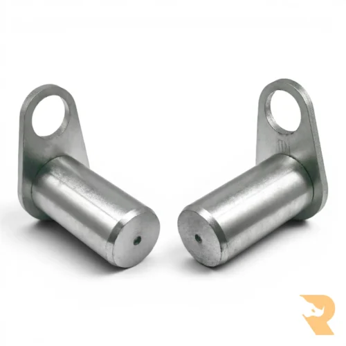 High-tensile 25mm steel pins used to secure the dozer blade to the main chassis frame.
